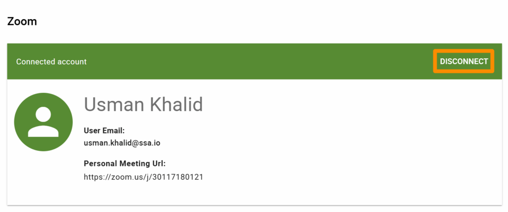Go to SSA Settings > Zoom and click on the Disconnect button.